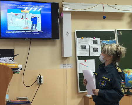 Сотрудники ГИМС проводят занятия в школах по безопасности на льду
