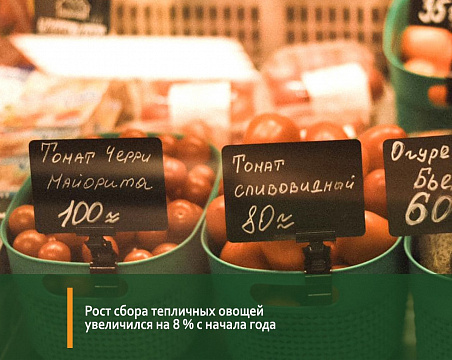 Рост сбора тепличных овощей увеличился на 8% с начала года