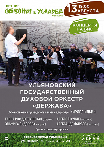 Ульяновский государственный духовой оркестр «Держава» сыграет лучшие номера в рамках проекта «Летние сезоны в Усадьбе»