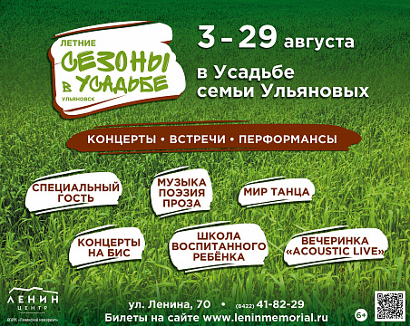 Культурный проект Ленинского мемориала, включающий музыкальную и историческую части, состоится с 3 по 29 августа на территории городской Усадьбы семьи Ульяновых.
