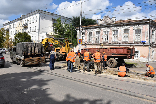 24 июля начат демонтаж брусчатки, уложенной в межрельсовом пространстве на участке между улицей Гончарова и переулком Комсомольским. Параллельно ведётся обустройство каналов для перемещения под землю кабельных линий электропередач.