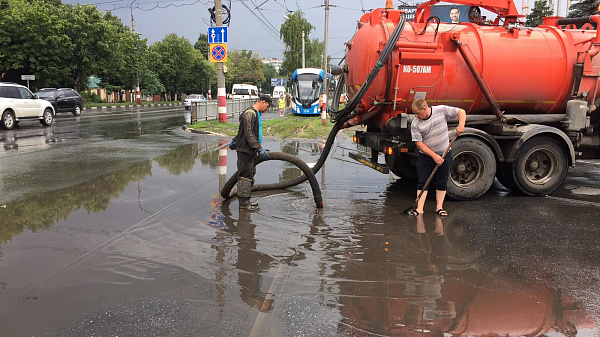 На большинстве участков система ливнёвок справилась с выпавшими осадками. Однако на ряде адресов были небольшие подтопления – здесь работали бригады ливневщиков МБУ «Дорремстрой».