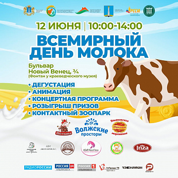 12 июня на бульваре Новый Венец пройдёт День молока. Вокруг фонтана напротив Краеведческого музея расположится выставка-дегустация крупных известных производителей молочной продукции.