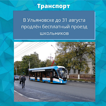 Согласно приказу МУП «Ульяновскэлектротранс» до 31 августа для школьников продлевается период бесплатного проезда в трамваях и троллейбусах.