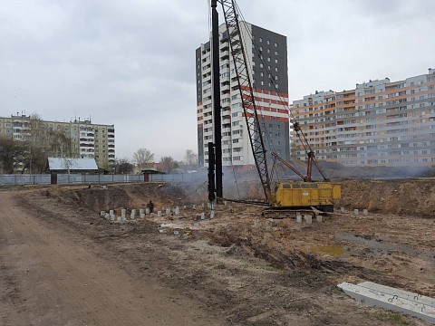 Уже выполнены работы по подготовке строительной площадки. Идёт разработка котлована и забивка свай под административно-хозяйственный блок, также забивка свай производится под блок старших классов.