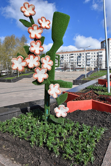 В Ульяновске к 9 Мая разбивают цветники и устанавливают праздничные композиции