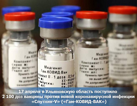 17 апреля в Ульяновскую область поступило 2 100 доз вакцины против новой коронавирусной инфекции «Спутник-V» («Гам-КОВИД-ВАК»)