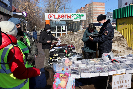 Вчера, 25 марта, сотрудники административно-технического контроля совместно с территориальным органом внутренних дел по Заволжскому району и членами Народной дружины провели рейд с целью пресечения несанкционированной уличной торговли.