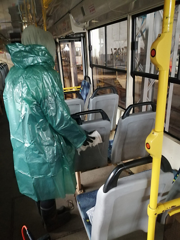 Общественный транспорт Ленинского района проходит дезинфекцию. Видео
