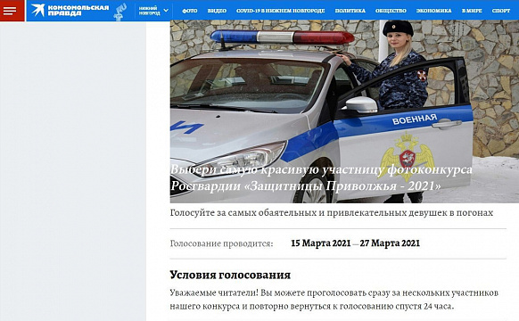 В преддверии 210-летия войск правопорядка и пятилетия со дня образования Федеральной службы войск национальной гвардии Российской Федерации редакцией «Комсомольская правда – Нижний Новгород» организовано проведение фотоконкурса «Защитницы Приволжья – 2021».