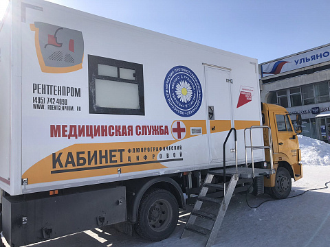 Мобильная бригада работала на площади 50-летия Победы. Каждый житель смог сделать флюорографию и сразу получить результат.