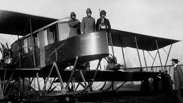 1914 год. поднялся в воздух первый российский четырёхмоторный цельнодеревянный биплан «Илья Муромец» — первый русский бомбардировщик, построенный под руководством лётчика-авиаконструктора И. И. Сикорского на русско-балтийском вагонном заводе.