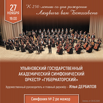 Симфонию № 2 ре мажор Людвига ван Бетховена в исполнении Ульяновского симфонического оркестра «Губернаторский» услышат зрители онлайн. Трансляция состоится 27 ноября в 19.00 на официальном сайте Ленинского мемориала