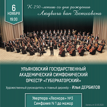 Ульяновцев приглашают на онлайн-показ концертной программы Ульяновского симфонического оркестра к 250-летию со дня рождения Людвига ван Бетховена. Трансляция будет организована 6 ноября в 19.00 на официальном сайте Ленинского мемориала: